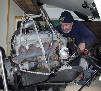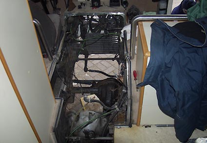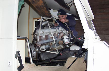 1-2004 It was time to fix the overheating problem of our 101. Har Jansen decided to do a diesel conversion so the V8 from his vehicle was available. A very good engine with low milage.